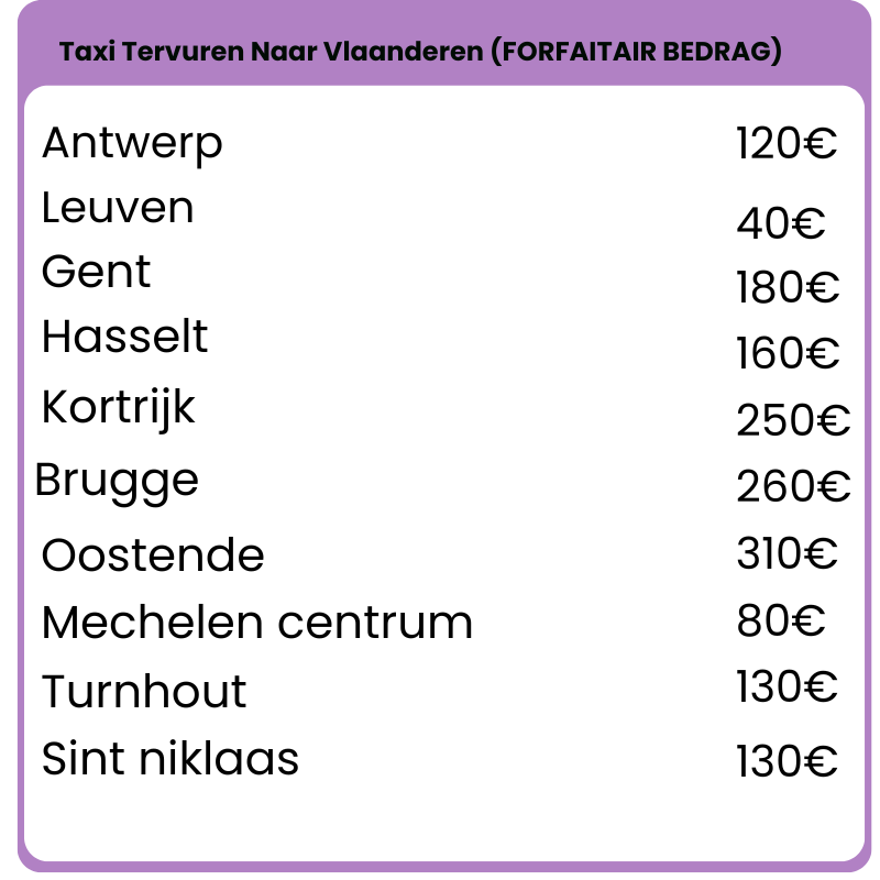 Reserveer je taxi in TERVUREN