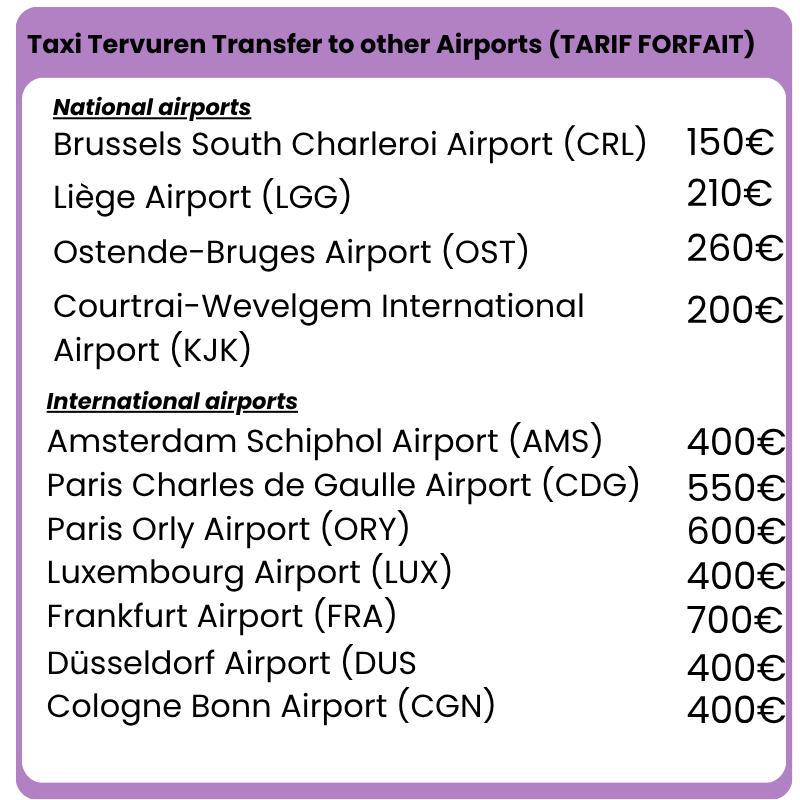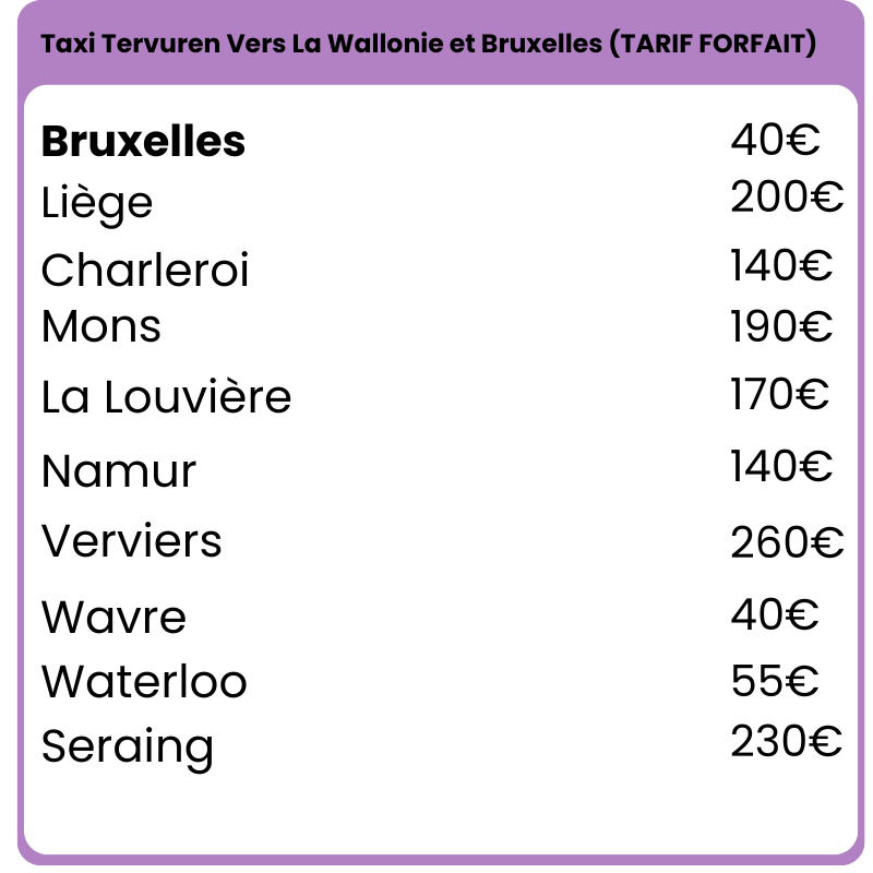 Onze forfaitaire tarieven zijn berekend vanaf het stadscentrum van de vermelde bestemming.